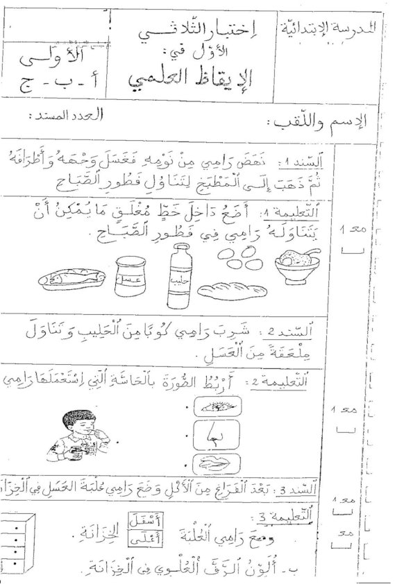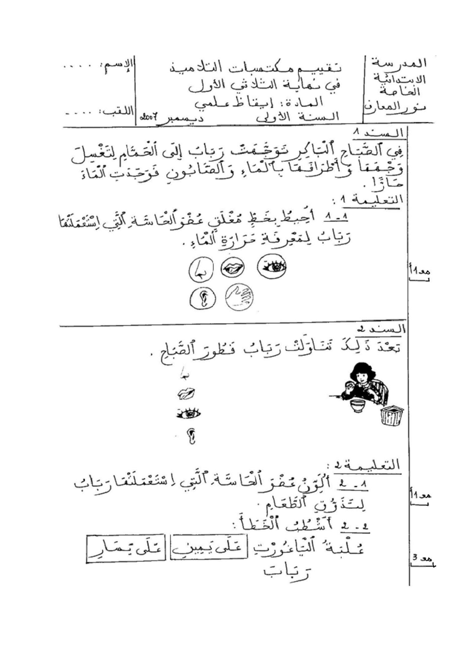 امتحانات ايقاظ علمي سنة أولى ابتدائي -الثلاثي الأول