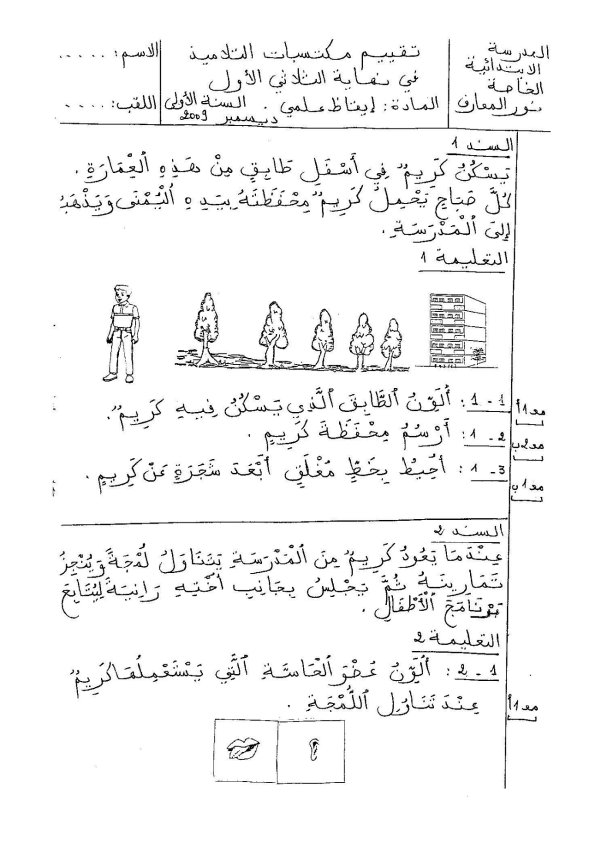 - امتحانات سنة أولى ابتدائي