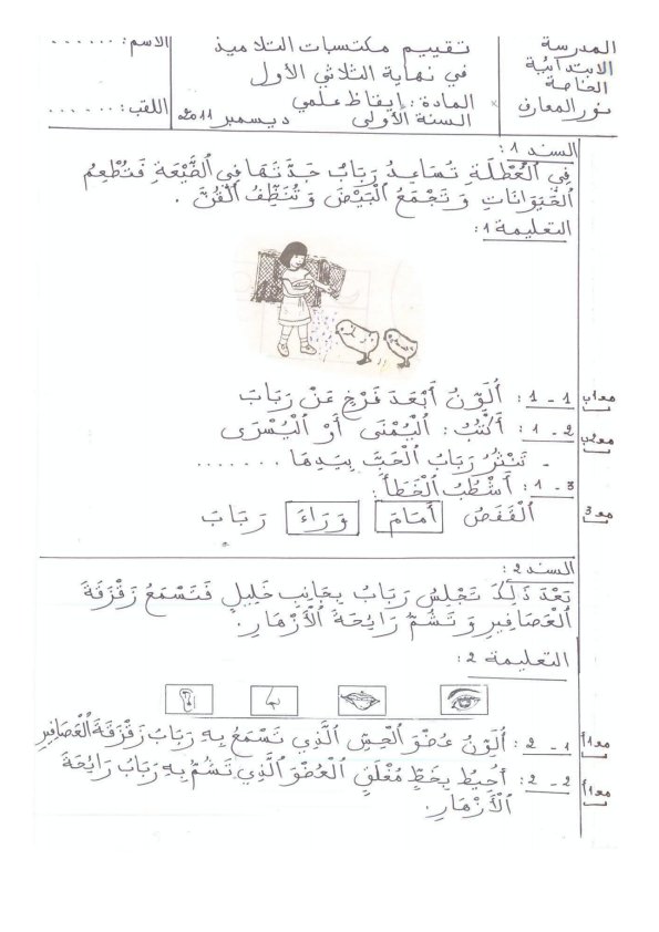 - امتحانات سنة أولى ابتدائي
