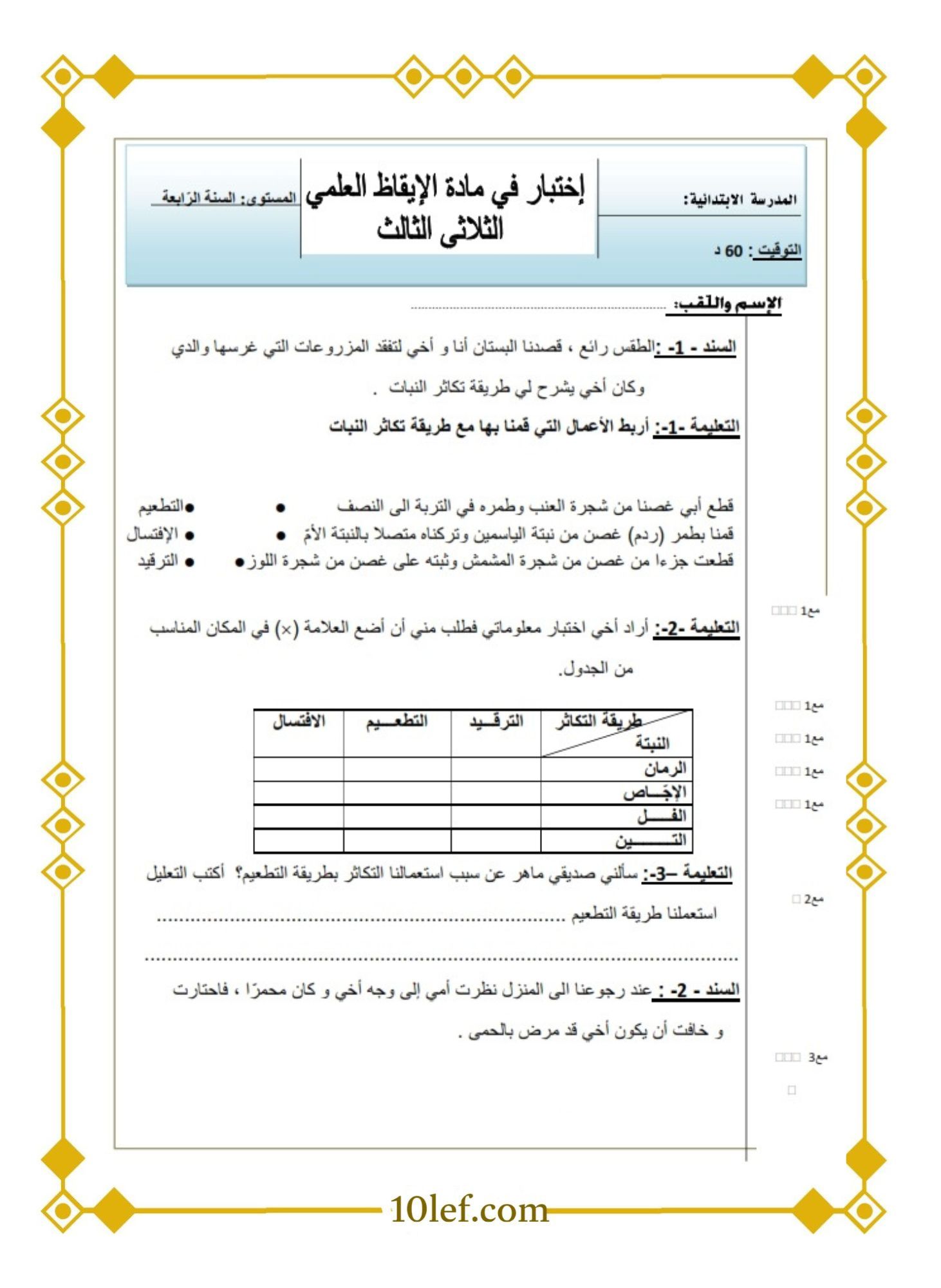امتحان ايقاظ علمي سنة رابعة الثلاثي الثالث |