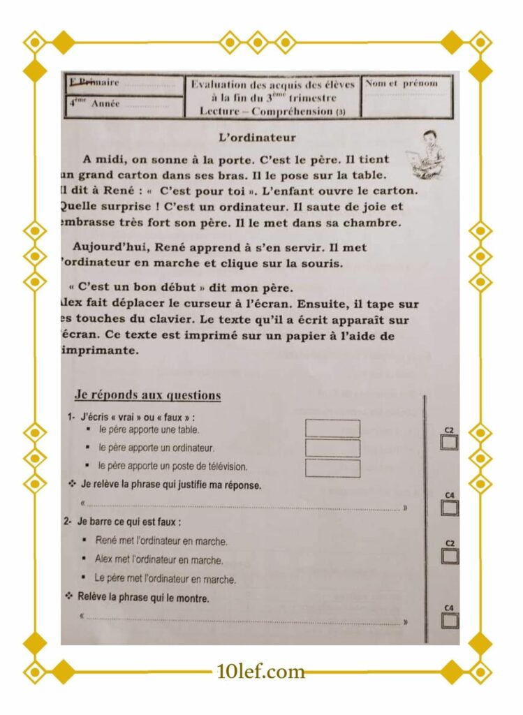 امتحان فرنسية سنة رابعة الثلاثي الثالث |