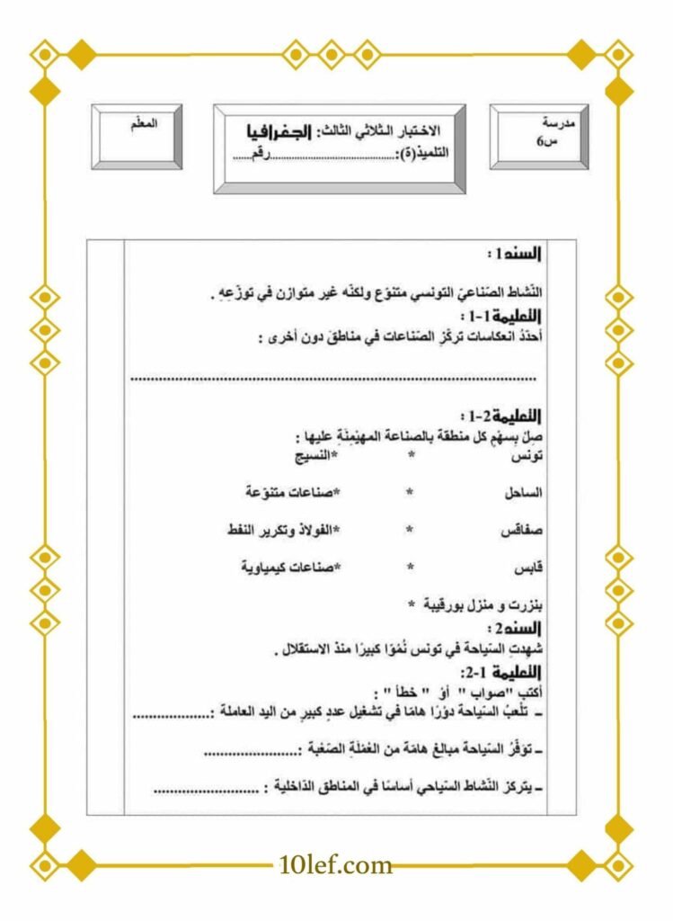 امتحان جغرافيا سنة سادسة الثلاثي الثالث |